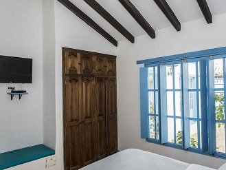 HabitacionNro 4:Cama Queen con una cama nido sencilla y baño privado, televisión con direc tv