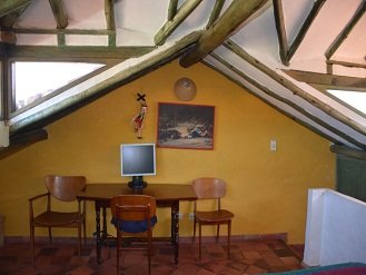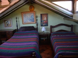 Habitación principal con cama doble, baño privado y televisión con servicio de DIRECTV, Una habitación con cama doble y baño privado y un altillo con dos camas dobles y una cama auxiliar.Todas las habitaciones cuenta con internet wifi gratis.