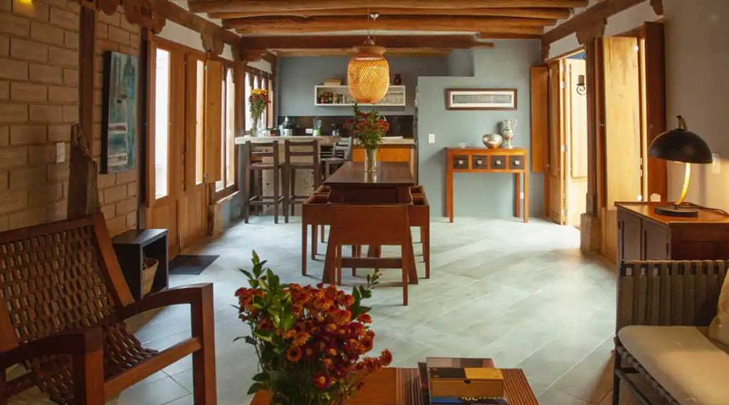 Se alquila por temporadas encantadora casa en el pueblo a sólo dos cuadras de la plaza principal, consta de dos habitaciones cada una con baño privado, sala comedor, patio interno, cocina completamente dotada. Exquisita decoración, capacidad para 4 personas, opcional +2 en colchonetas.
