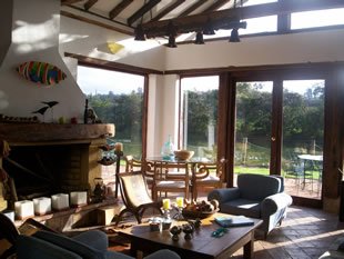 Sala con chimenea, estudio con televisión, comedor, cocina, zona de lavandería, BBQ a gas , 2 televisiones con Direct TV. La finca esta ubicada en el medio de un cultivo de manzanas y duraznos en plena producción. Espectacular paisaje, agua abundante y mucha paz y tranquilidad.