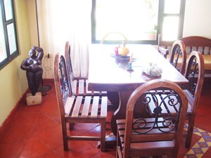 Ubicada a 8 cuadras de la plaza mayor de Villa de leyva, capacidad para 9 personas, cuenta con 5 habitaciones (2 camas dobles y 5 sencillas), cocina dotada con todo el menaje, 2 baños, 2 salas, comedor y balcón, en el exterior de la casa hay 2 jardines grandes con árboles frutales, 1 asador, y parqueadero interno para 4 carros.