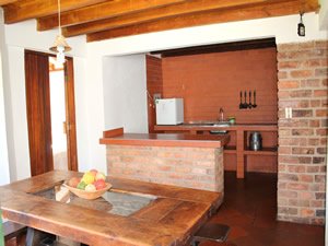 Cabaña de dos plantas, agradable balcón con hamaca, 2 habitaciones dobles con baño privado, 2 habitaciones con 2 camarotes y baño privado, baño auxiliar, sala con chimenea, comedor rustico y cocina equipada (estufa, nevera, loza, ollas etc), agua caliente, TV por cable, zona residencial.