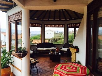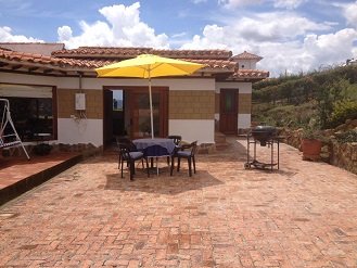 Caracteristicas: La mejor vista de Villa de Leyva la puedes disfrutar en esta hermosa casa campestre, ubicada a tan solo un kilometro del casco urbano, consta de 4 amplias alcobas cada una con baño privado, 3 salas, star de tv, kiosko,hamacas,  sala principal, BBQ, terraza amplia, nevecon con agua fria,cocina totalmente dotada,  duchas de agua caiente, televisores con DTV.