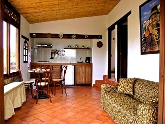Caracteristicas: Situada en la finca Villa Paola a 15 minutos caminando de la plaza principal. La cabaña es amplia, acogedora y privada con hermosa vista. Cuenta con 2 dormitorios, cada uno con una cama doble y una individual. La sala de star y comedor integrados con una cocina tipo americano completamente dotada. Parqueadero para 2 carros.