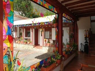 Descripción: Casa muy confortable de estilo colonial, ubicada en el perímetro urbano, en un sector de absoluta tranquilidad, a solo seis cuadras de la plaza mayor y a cuatro del hospital, con vista a los cerros, cuenta con habitaciones para pareja y familiares con espacios calidos, se encuentra en el pueblo pero en un sector muy silencioso para disfrutar de toda la magia de Villa de Leyva, atendida directamente por sus propietarios.