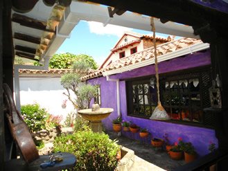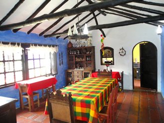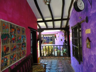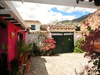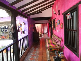 La posada san Martín esta ubicada estrategicamente a solo una cuadra de la plaza mayor de Villa de Leyva con unos espacios llenos de luz y color, con una bella vista desde el segundo piso del hostal.